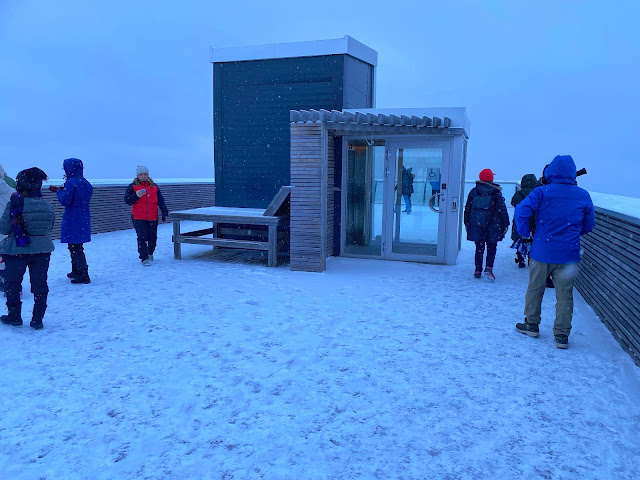 @特羅姆瑟『Fjellheisen 纜車站』山頂的瞭望台,大雪紛飛下揮揮手~