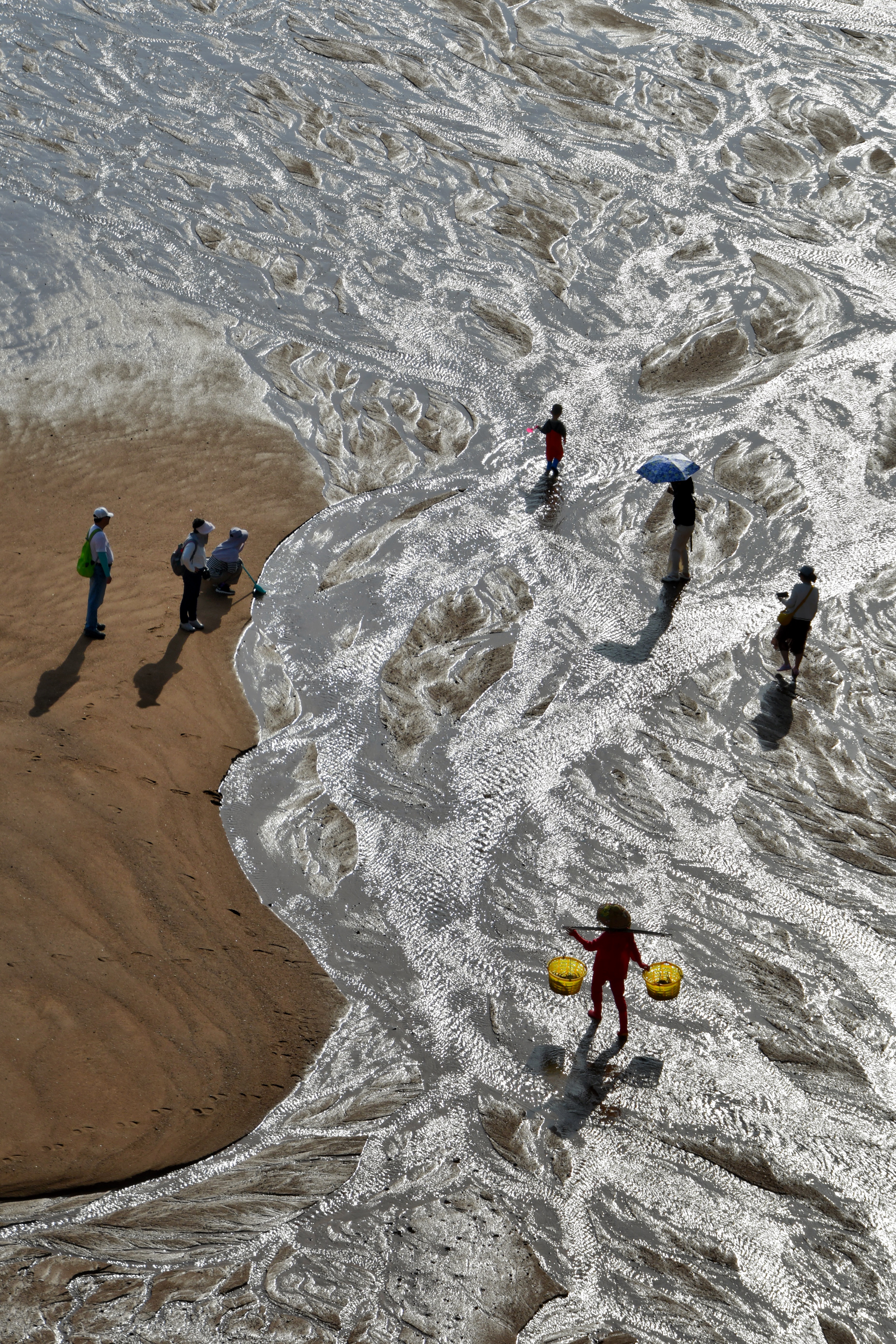 @福建霞浦三沙鎮『東璧小漁村』這裡依山傍海視野開闊,船隻穿梭 落日熔金,一道彎曲的水道沙灘,小溪從中穿過,沖刷出一片複雜多變的紋理,柔美的線條在落日餘暉照射下,呈現艷麗的對比色,美景當下 令人美不思歸。